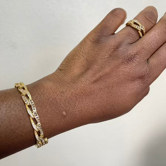 Chain Link Cubic Zirconia Bangle and Ring Set