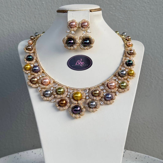 Luxury Statement 2-Piece Multicolour Pearl Cubic Zirconia Jewelry Set