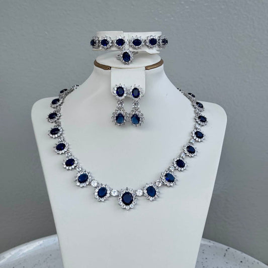 Complete Bridal Cubic Zirconia Jewelry Set - Blue