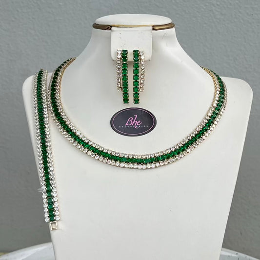 Statement Round Luxury Cubic Zirconia Jewelry Set - Green