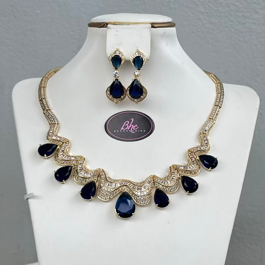Complete Bridal Cubic Zirconia Jewelry Set - Blue