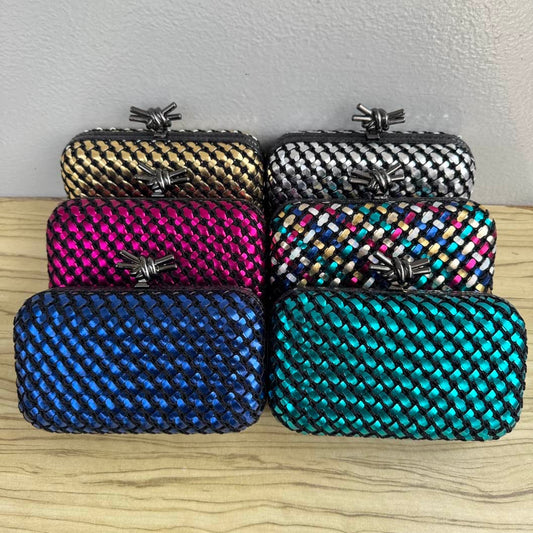 Metallic Weave Satin Knot Clasp Clutch Purse