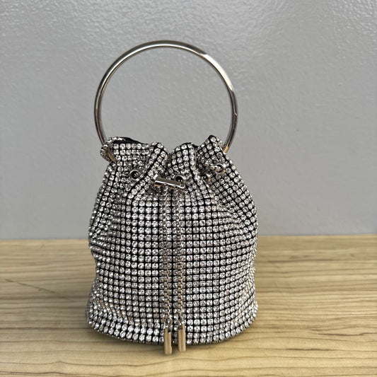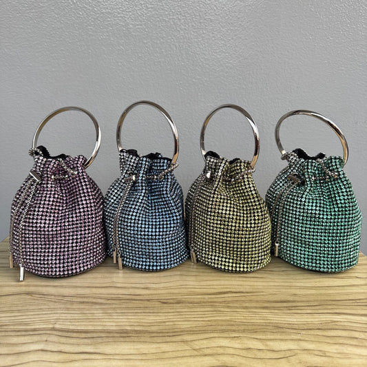 Rhinestone Ring Handle Drawstring Bucket Clutch Bag
