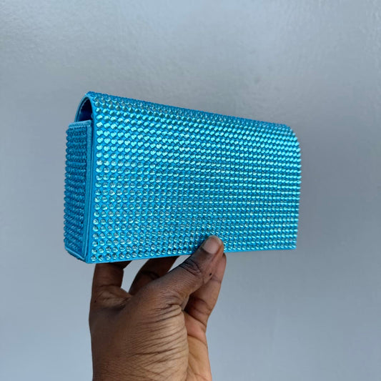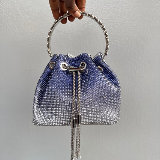 Ombre Rhinestone Ring Handle Drawstring Bucket Clutch Bag