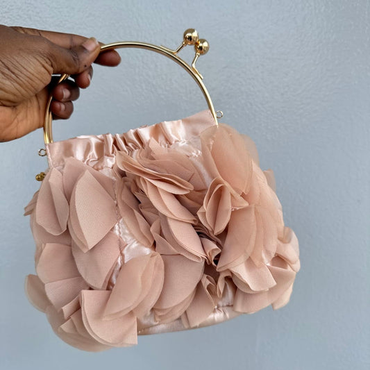 Satin Ruffle Detail Kiss Lock Clutch Bag - Rosegold