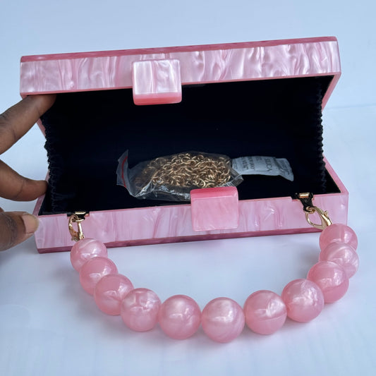 Rectangle Acrylic Beaded Strap Clutch Purse - Pink
