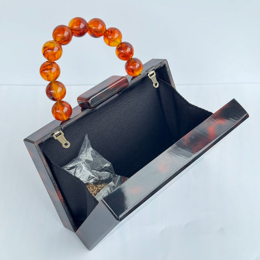 Rectangle Beaded Top Handle Acrylic Clutch Purse