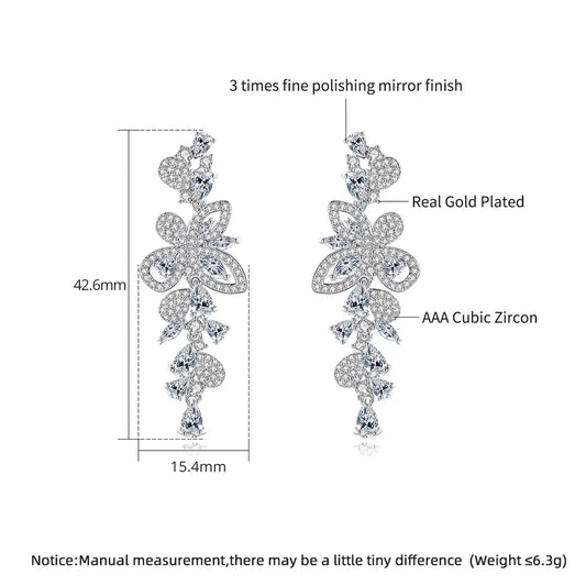 Moon Star Long Cubic Zirconia Bridal Earrings