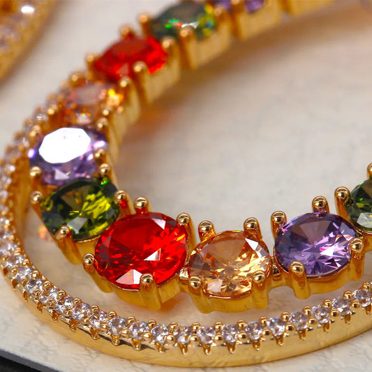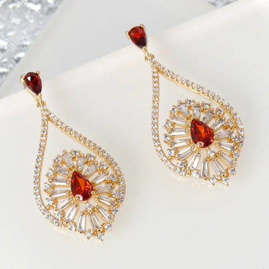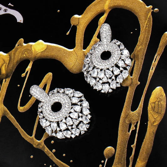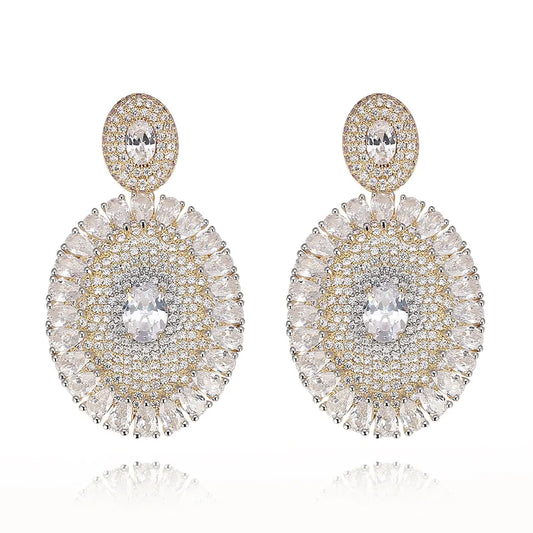 Statement Size Cubic Zirconia Drop Earrings - Gold