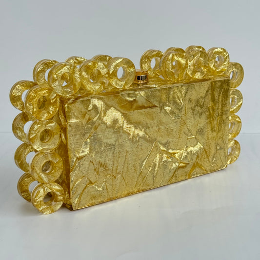 Luxury Crinkled Fabric Detail Acrylic Clutch Purse - Gold