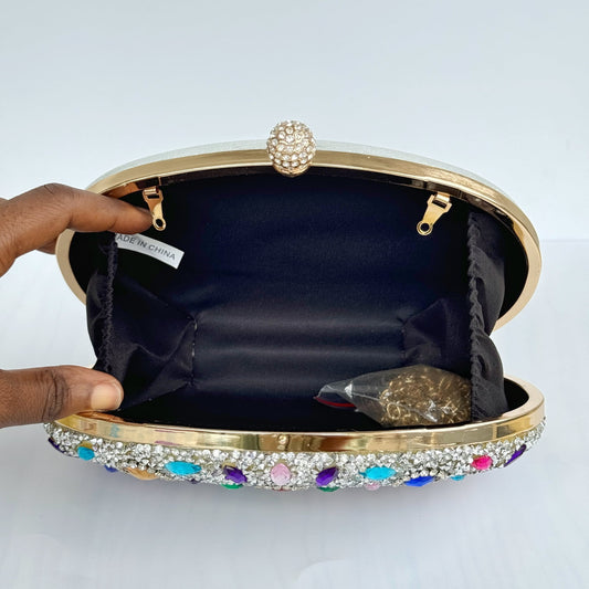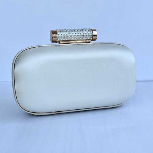 Satin Rhinestone Embellished Mini Clutch - Ivory