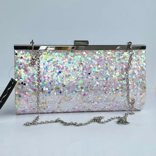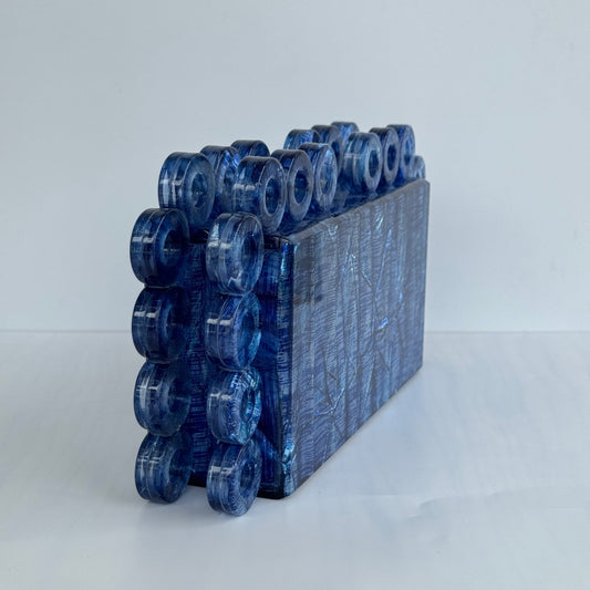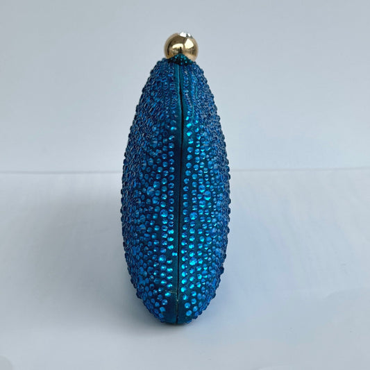 Luxury Crinkled Fabric Detail Acrylic Clutch Purse - Blue