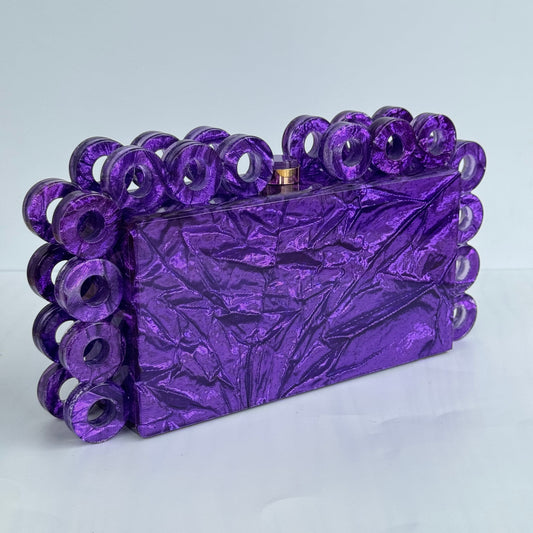 Luxury Crinkled Fabric Detail Acrylic Clutch Purse - Purple