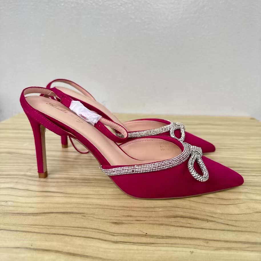 Bow Detail Ankle Strap Suede Pointed Toe Heeled Shoe