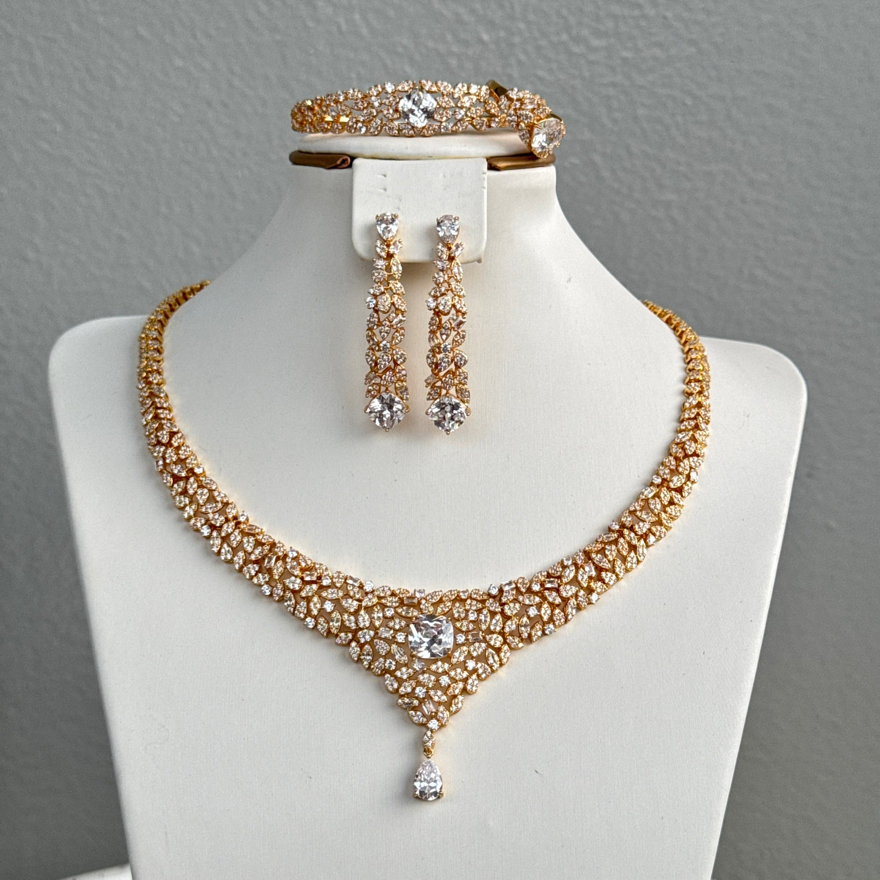- Packaging: consists of necklace, earrings, bracelet and an adjustable ring. All items comes in a jewelry box